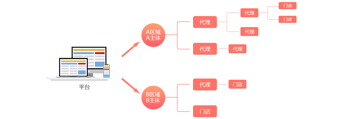 代理層級裂變發(fā)展,從而推動整個平臺成為多品牌萬店連鎖平臺