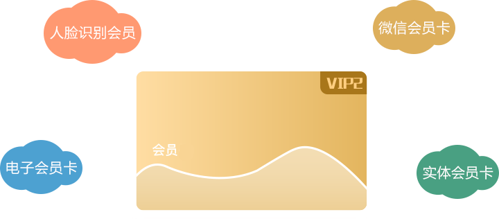 實體卡會員+電子會員+微信會員+人臉識別會員,實現(xiàn)人臉識別會員及人臉支付,不用帶卡、不用手機也能完成會員消費